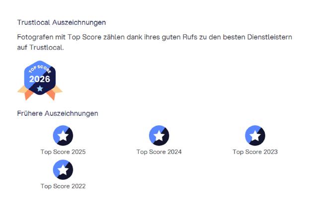 Dies ist eine besondere Auszeichnung für Fotografen mit dem besten Trustlocal-Score!